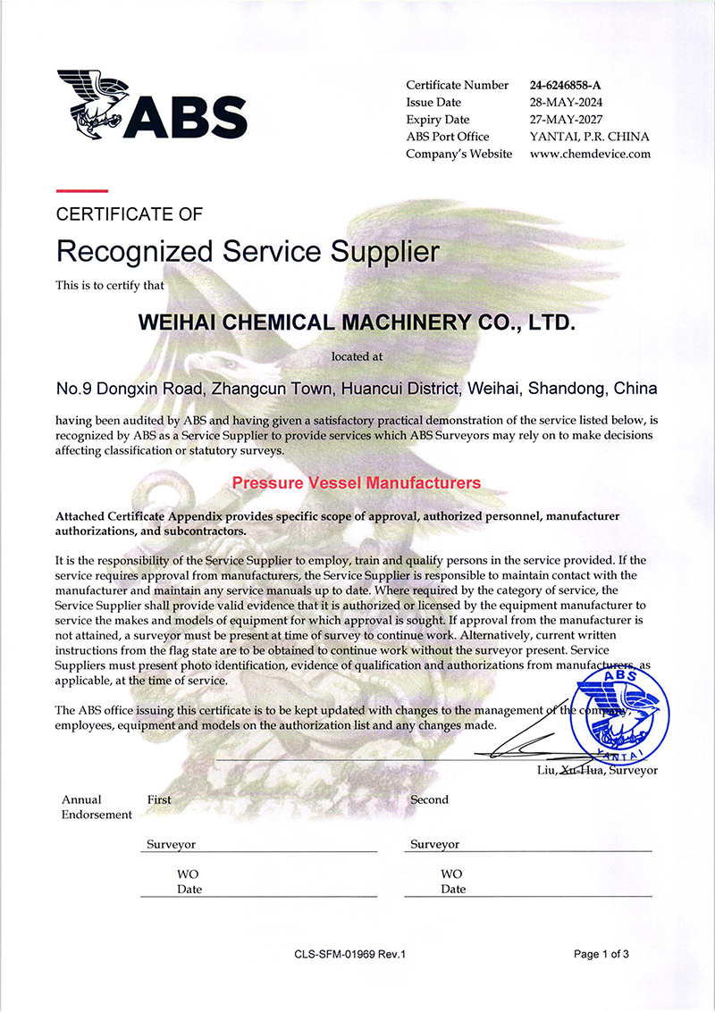 近日威?;C械有限公司(以下簡稱“威?;瘷C”)壓力容器產(chǎn)品成功獲得了美國船級社(ABS)頒發(fā)的權(quán)威認證,是繼復合板產(chǎn)品ABS認證后拿到第二張ABS證書,這標志…