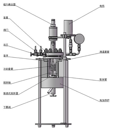 該結(jié)構(gòu)為環(huán)形磁力密封裝置,依靠兩組強力磁鋼異極相吸的原理通過磁場穿透密封罩體來實現(xiàn)力矩的無接觸式傳遞,由于電機經(jīng)過皮帶二級減速,故而其攪拌特點是大轉(zhuǎn)矩低轉(zhuǎn)速(≤750r/min),適合攪拌中高粘度(cp≥5000mpa.s)或固體顆粒含量較多的反應物料介質(zhì)體系。